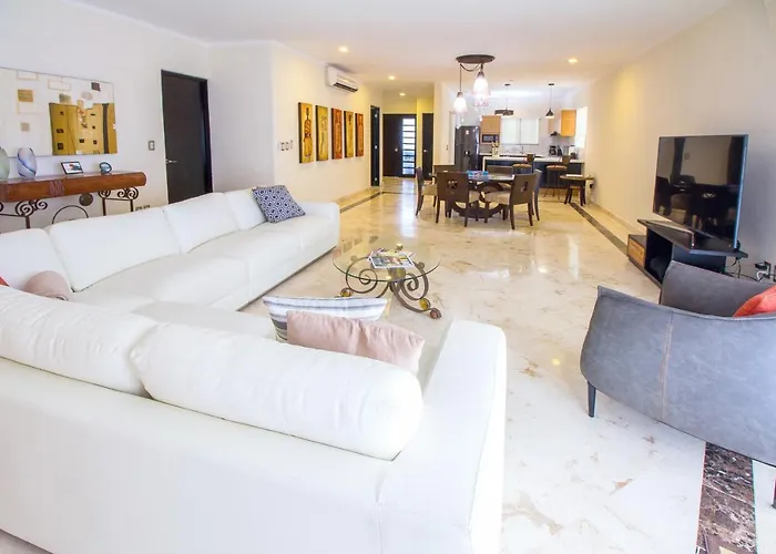 Situated only steps away from the Quinta Alegria Shopping Mall, the spacious Corto Maltes 203 Apt 2 Bedroom Ocean View Playa del Carmen looks out onto the sea. The apartment offers a private parking lot on site.